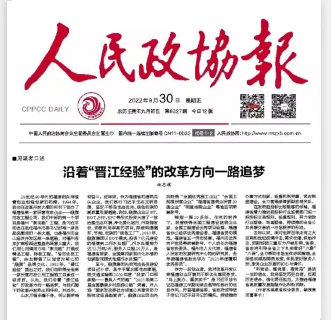 《人民政协报》刊登董事长施忠旗文章 沿着“晋江经验”的改革方向一路追梦发布日期:2022-09-30 -