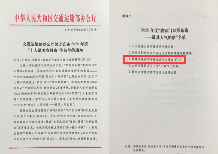 喜报 | 融旗集团平潭北部生态廊道(EPC)项目荣获交通运输部2020年度“我家门口那条路——最具人气的路”发布日期:2021-06-09 -