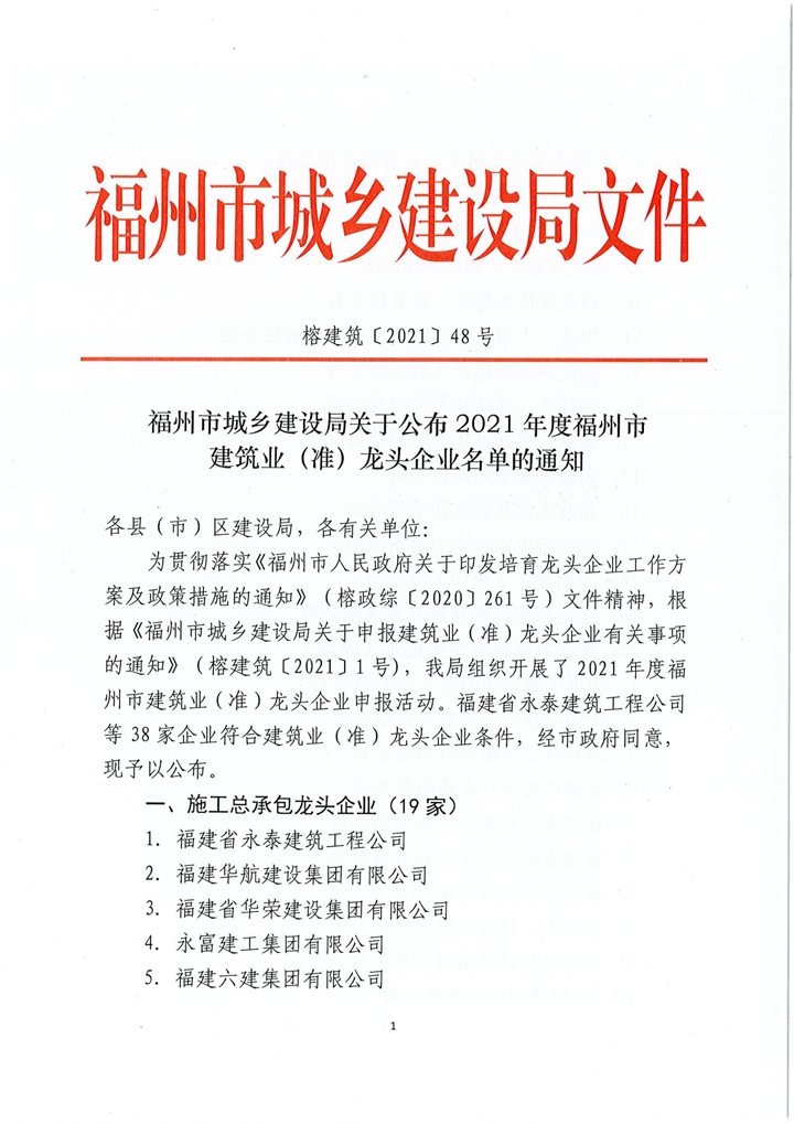 喜报 | 乐动网页登录荣获“2021年度福州市建筑业龙头企业”称号发布日期:2021-04-08 -