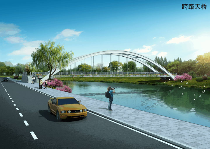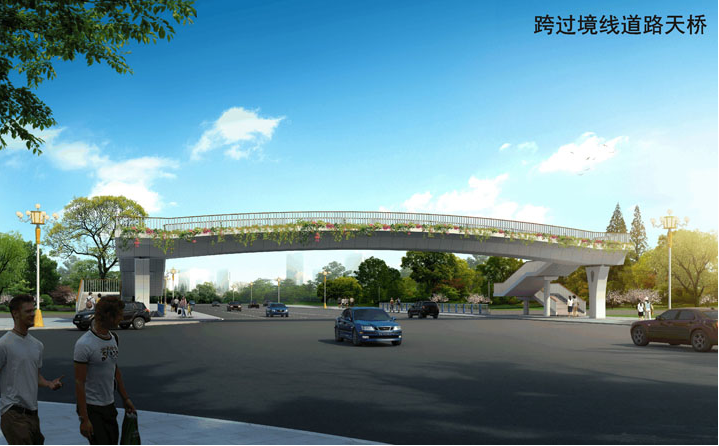3、连接滨河公园与印石山公园的跨过境线道路天桥1座,单跨跨度约39m。
